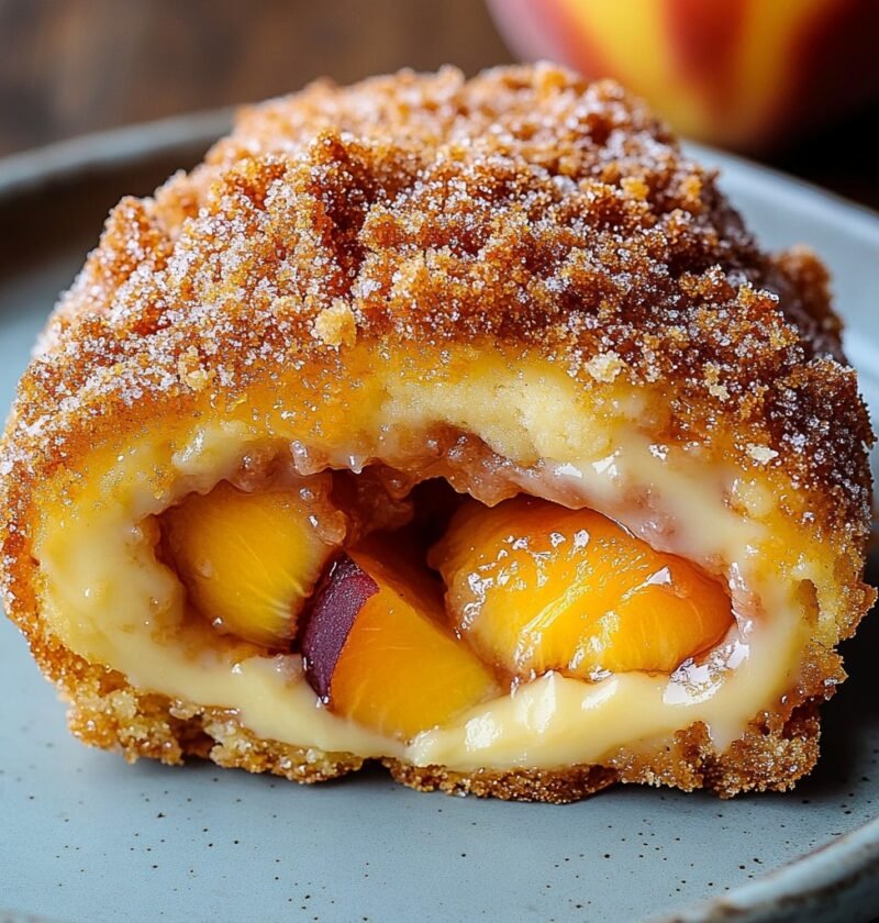 Use a deep-fry thermometer to monitor oil temperature; frying at 350°F (175°C) ensures a golden crust without absorbing excessive oil. Do not overcrowd the pan—this drops the oil’s temperature and can create greasy donuts. For extra decadence, sprinkle some brown sugar over the cream cheese before adding peach filling.