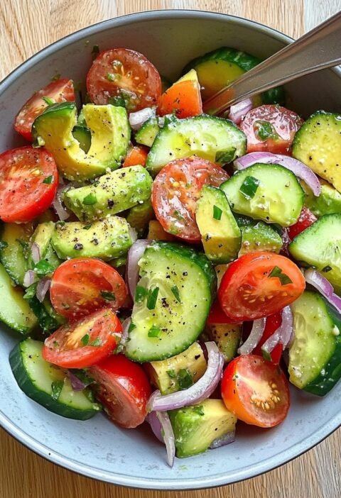 Inspired by the classic Mexican guacamole, this salad version elevates beloved flavors with the addition of sweet corn, juicy cherry tomatoes, crunchy cucumber, and a gentle kick from optional jalapeño, all gently tossed for a satisfying, chunky texture.