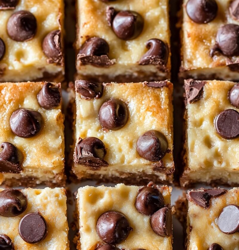 Chocolate Chip Cheesecake Bars appeal to adults and children alike, thanks to their classic cookie taste and smooth, irresistible filling.