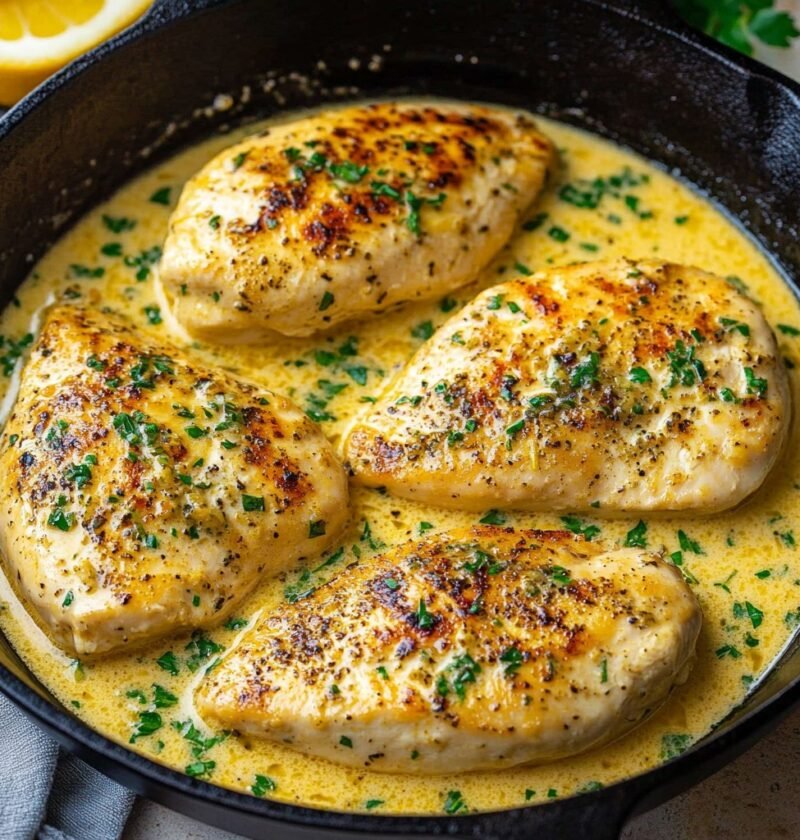 - Return the seared chicken to the skillet, coating each piece generously with the creamy garlic sauce.
