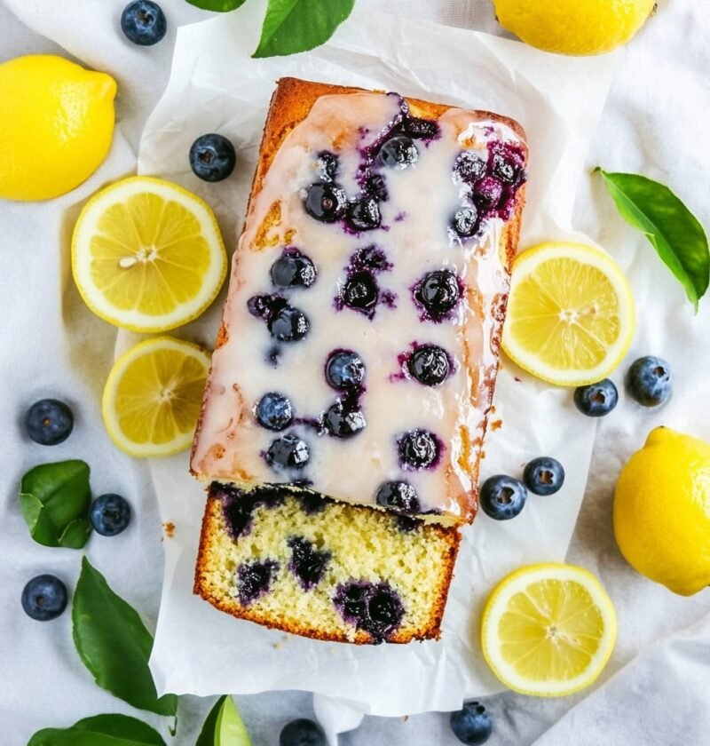 A moist and tender lemon blueberry loaf cake bursting with fresh blueberries and bright lemon flavor, topped with a sweet and tangy lemon glaze. Perfect for dessert, brunch, or an afternoon snack.