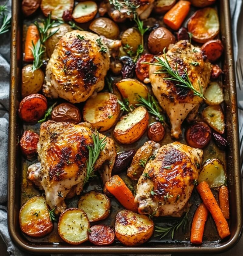 Expect juicy, tender chicken, roasted potatoes, bell peppers, and carrots tossed in aromatic spices, all cooked on a single pan. It’s healthy, customizable, and perfectly suited for families wanting a wholesome dinner without the fuss.