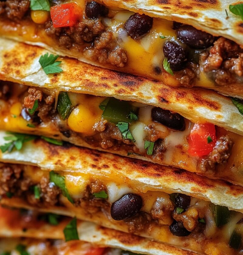 For a crispy finish, make sure the top tortillas are brushed lightly with olive oil before baking. If you prefer extra crunch, broil the quesadillas for 2–3 minutes after baking, but watch closely to prevent burning. For easier serving, cut the bake into small, handheld squares—perfect for a graduation crowd.