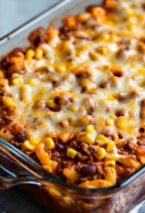 Instead of serving the sauce tossed with pasta, this recipe transforms it into a hearty, oven-baked meal that is perfect for family gatherings or weeknight dinners.