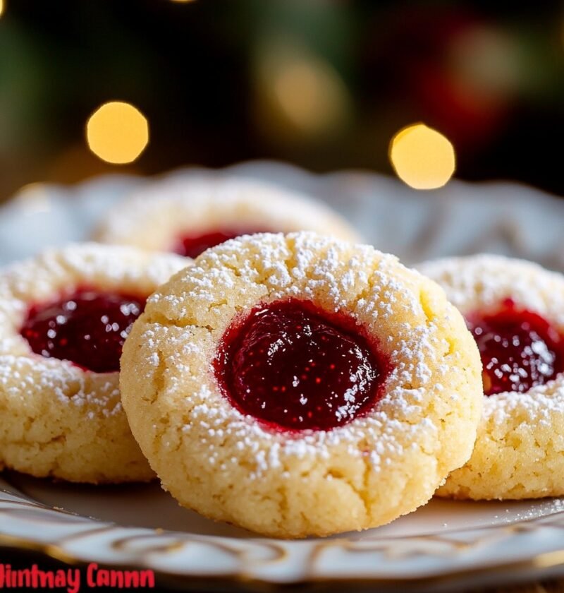 Raspberry Jam Christmas Thumbprint Cookies